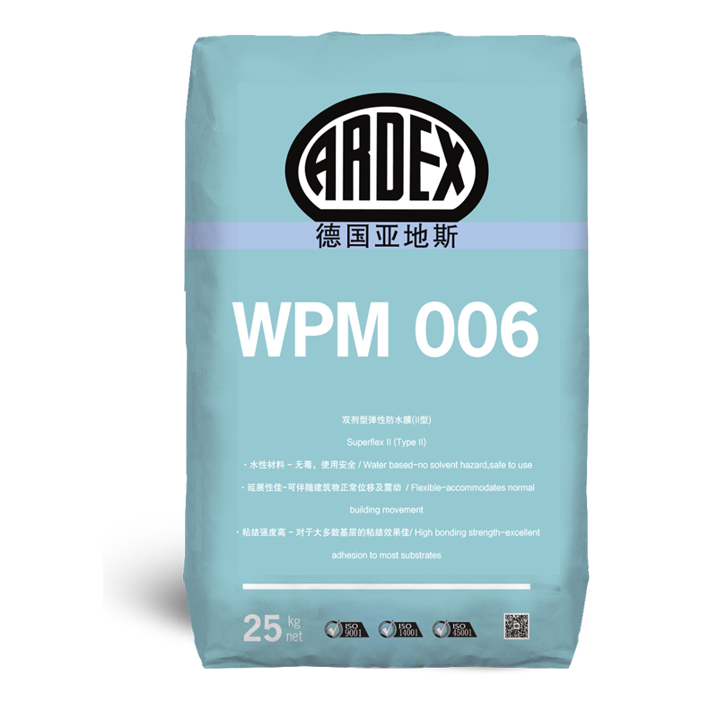 ARDEX WPM 006 (II 型) 是一種雙組份、高柔性的防水膜,使用于潮濕區(qū)域,如浴室、陽(yáng)臺(tái)、露臺(tái)、盥洗室等地方的牢固耐用的涂布式防水層。