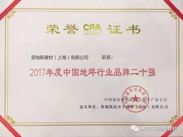 杰出品牌 | 亞地斯高人氣入選2017年度中國(guó)地坪行業(yè)品牌二十強(qiáng)