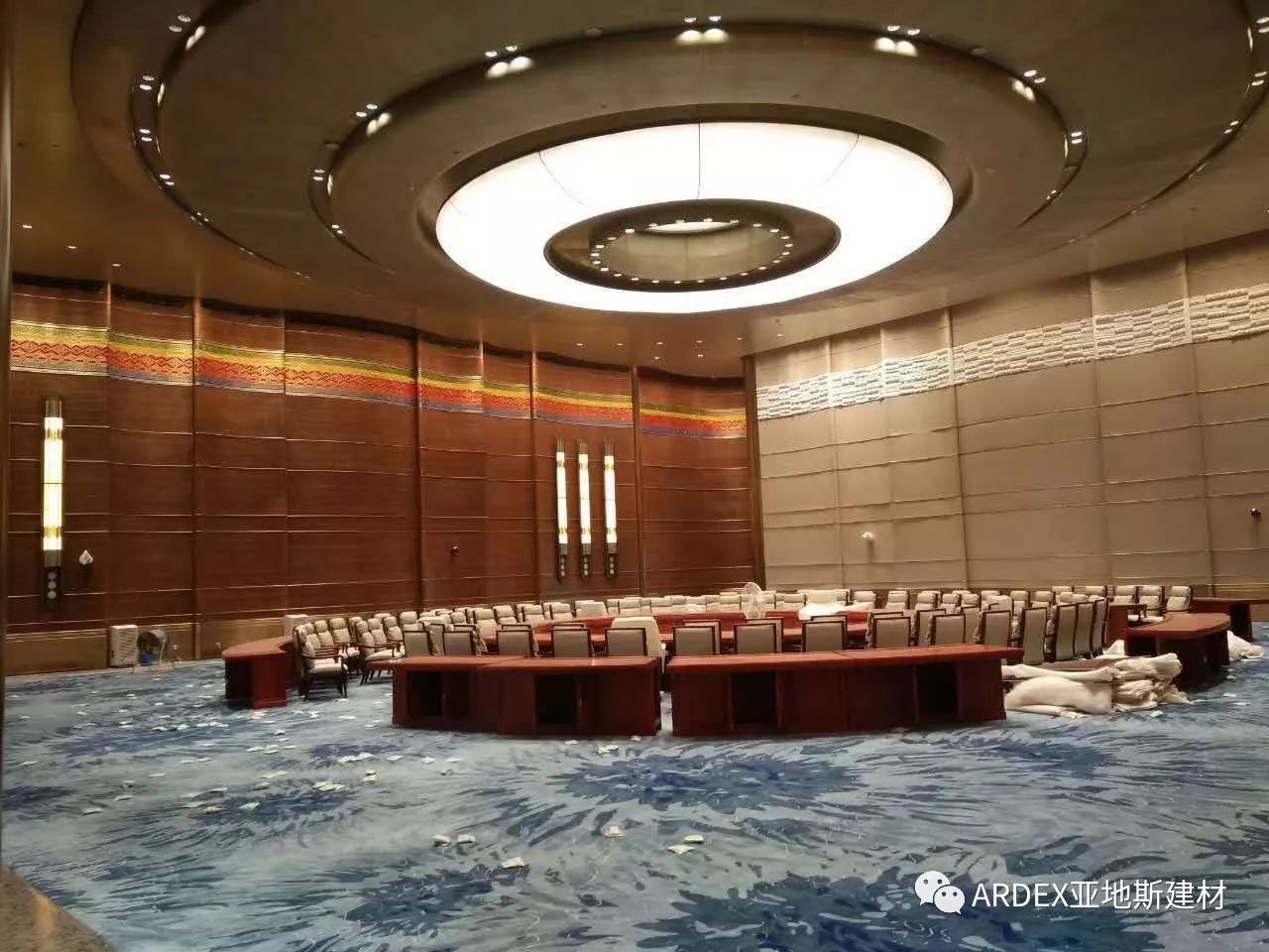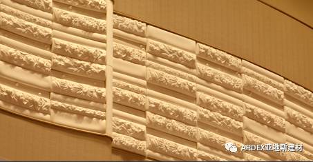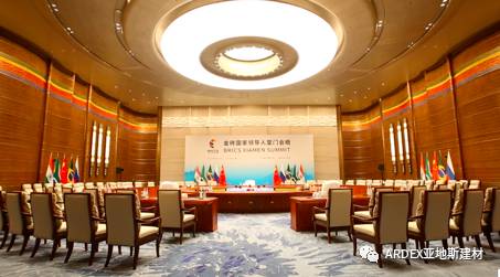 值得一提的是,五國(guó)大范圍會(huì)議室的主背景墻上6.75米高處,宋代名窯之一的德化瓷被做成了金磚五國(guó)國(guó)花的造型“貼”在了墻上。瓷磚膠正是采用了亞地斯(ARDEX)的輔材產(chǎn)品。